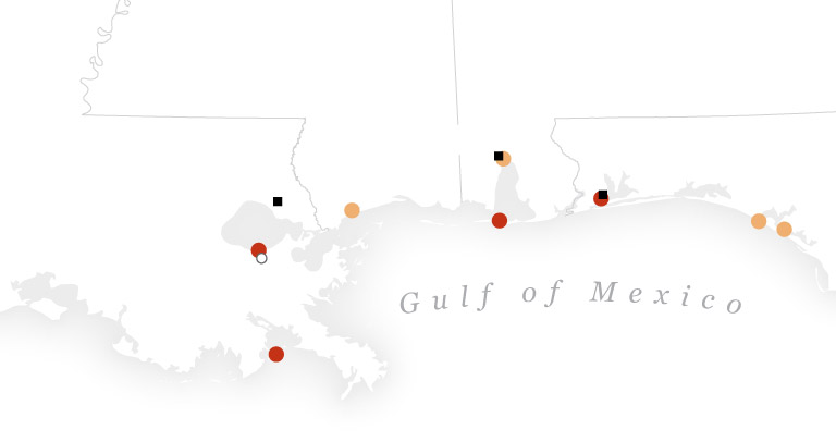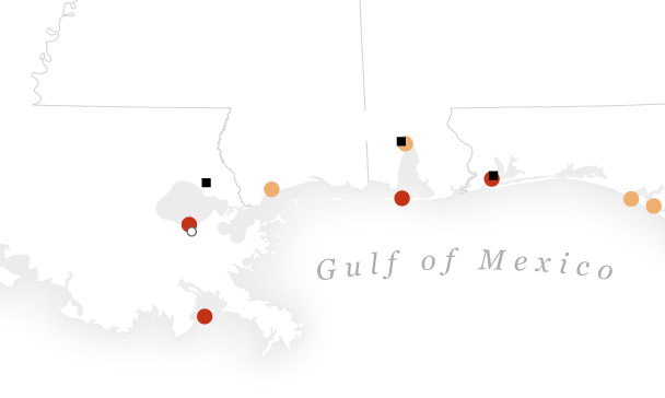 Here are glimpses at three spots along a roughly 200-mile stretch of the U.S. Gulf Coast that are already confronting this new reality: