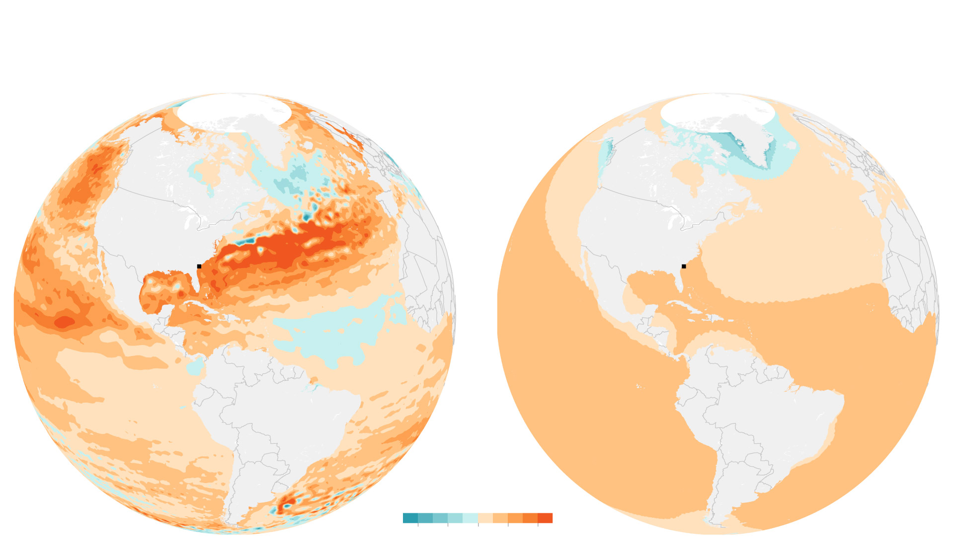Scientists suspect part of that is because of the Gulf Stream — a long band of warm water that follows the coast up from the equator and then, near Cape Hatteras, turns out into the Atlantic Ocean. The waters of the Gulf Stream and the Gulf of Mexico are warming faster than other parts of the Atlantic, boosting sea levels. “The Gulf of Mexico has warmed exceptionally fast over the past decade and a half,” Piecuch said. “It’s uncontroversial.”